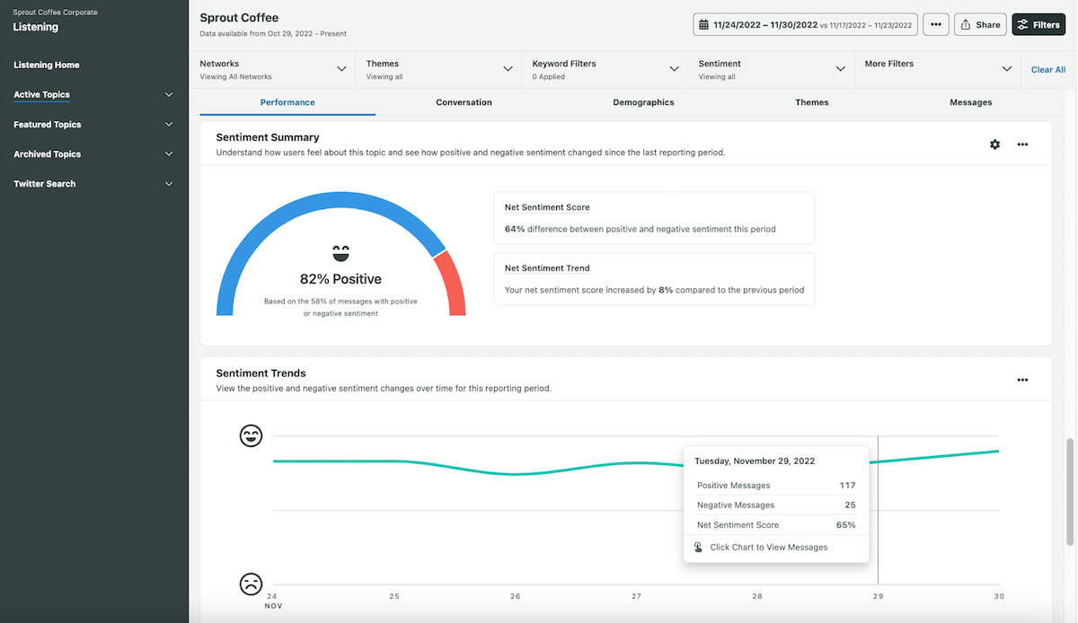 The likes, shares, and comments can gauge your followers’ interests and preferences. Use Social Sprout to dig deeper and analyze trends and behaviors from your social media interactions.