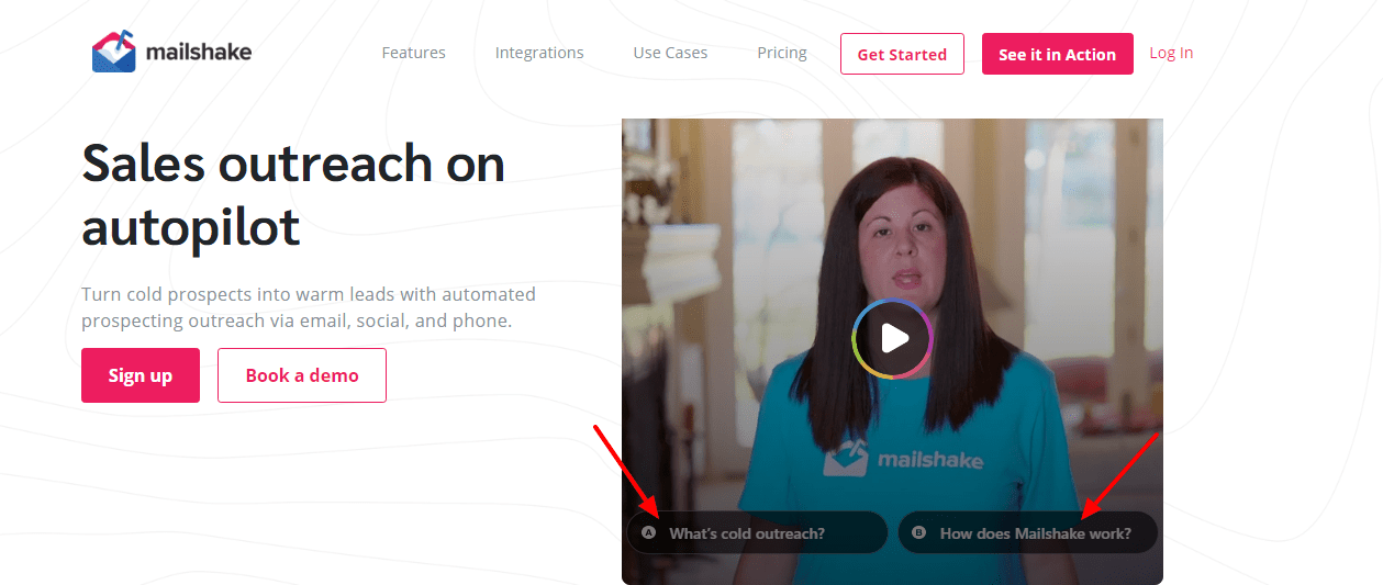 Mailshake here makes good use of interactive videos on its landing page. It has placed a video right on its hero fold. The video starts with addressing a customer pain point and then tells how the product can help solve it.
