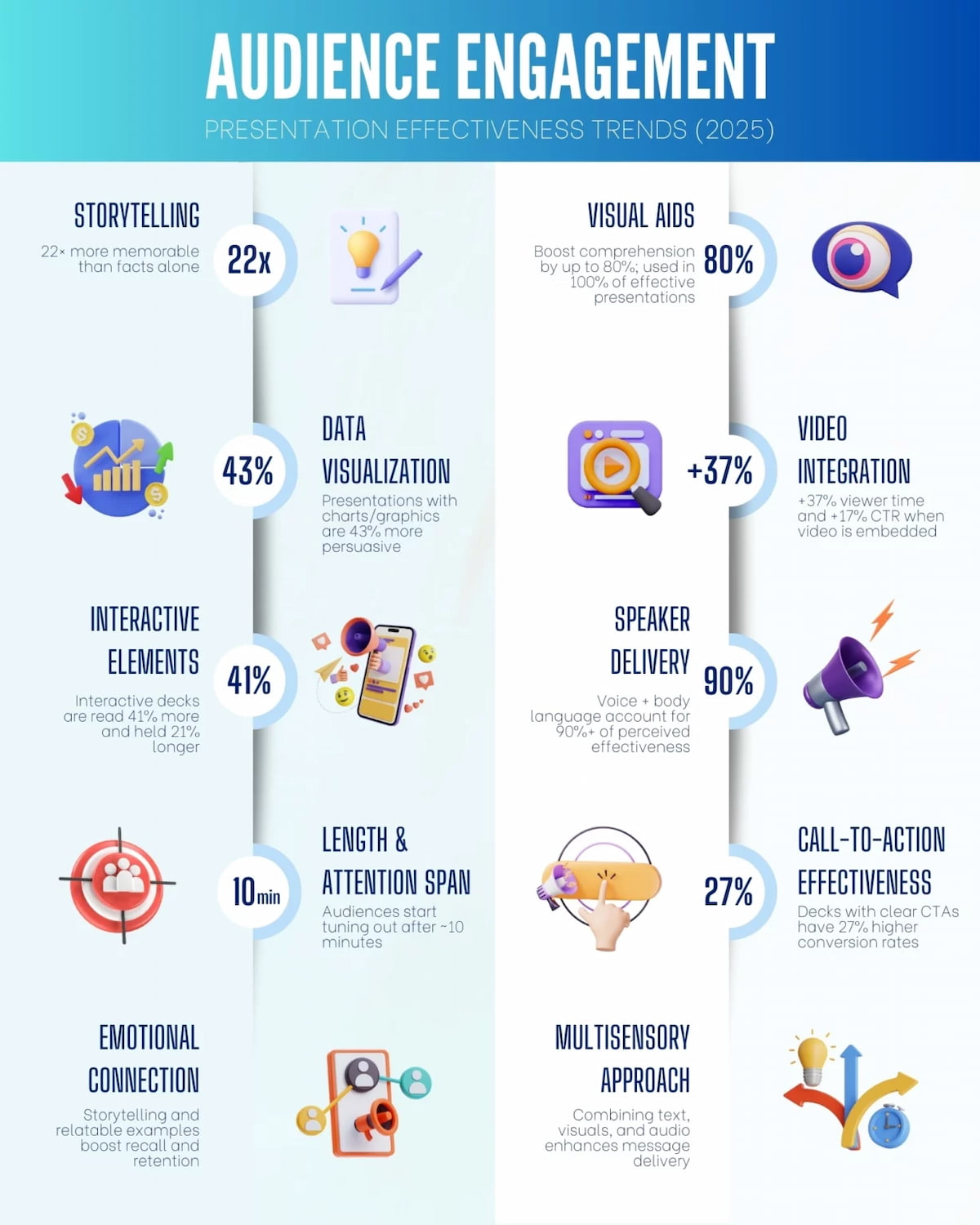 The implementation of these best practices leads to presentations which both engage audiences and follow easily while driving conversions.