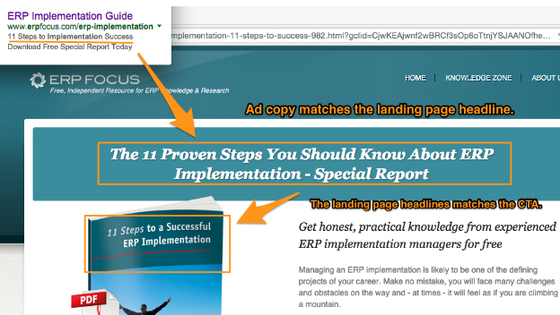 More importantly, your landing page headline must be relevant to the main offer and establish message match your lead magnet or Google ad. Here’s a good example: