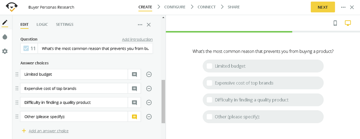 With a free basic plan, you can create unlimited surveys! 🙂