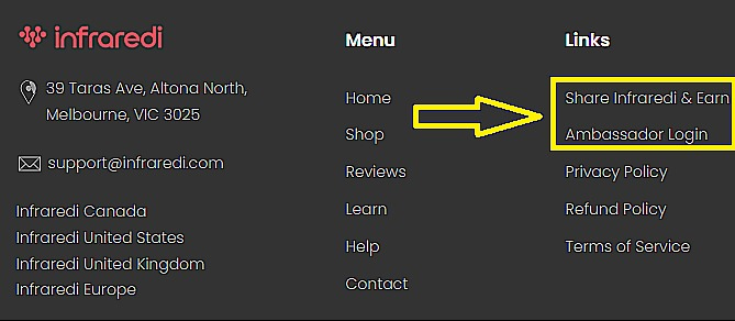 My favorite brand to demonstrate this with is infraredi since it offers a brand ambassadorship opportunity as a reward. With this, the ambassadors earn a lifetime percentage commission whenever someone shops using their affiliate link. The additional income opportunity can entice the leads to finally buy in and start their journey with the brand.