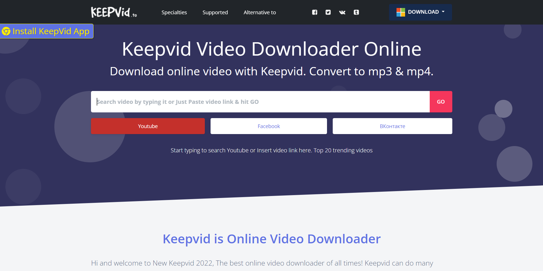 Simply visit the KeepVid website and download videos by pasting your URL. Downloads are only limited to the MP4 file format as of now.