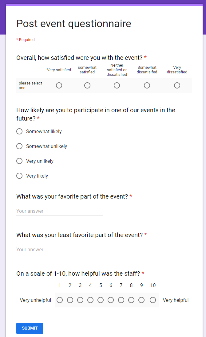 Post-event questionnaire