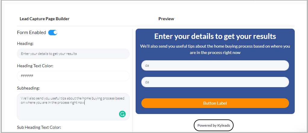 Within the KyLeads quiz builder, that’s as simple as adding a heading and subheading. Since each outcome has a unique mailing list or tag applied to it, set up your email marketing service to deliver a lead magnet or whatever the incentive was depending on the outcome they got.