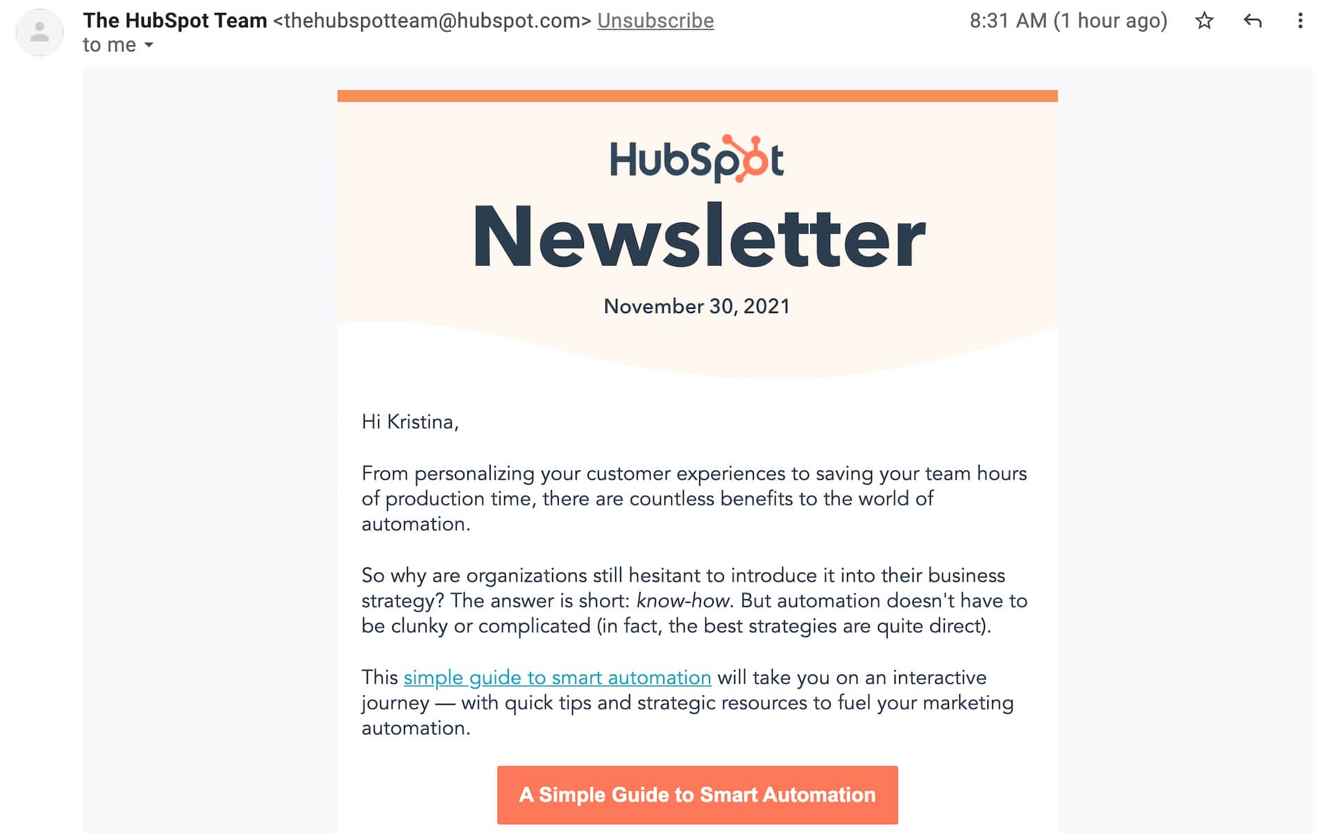 So, if you want to run a successful email brand awareness campaign, start with optimizing your subject line. Include your company name or product, clarifying who the email is from and what it’s about.Â