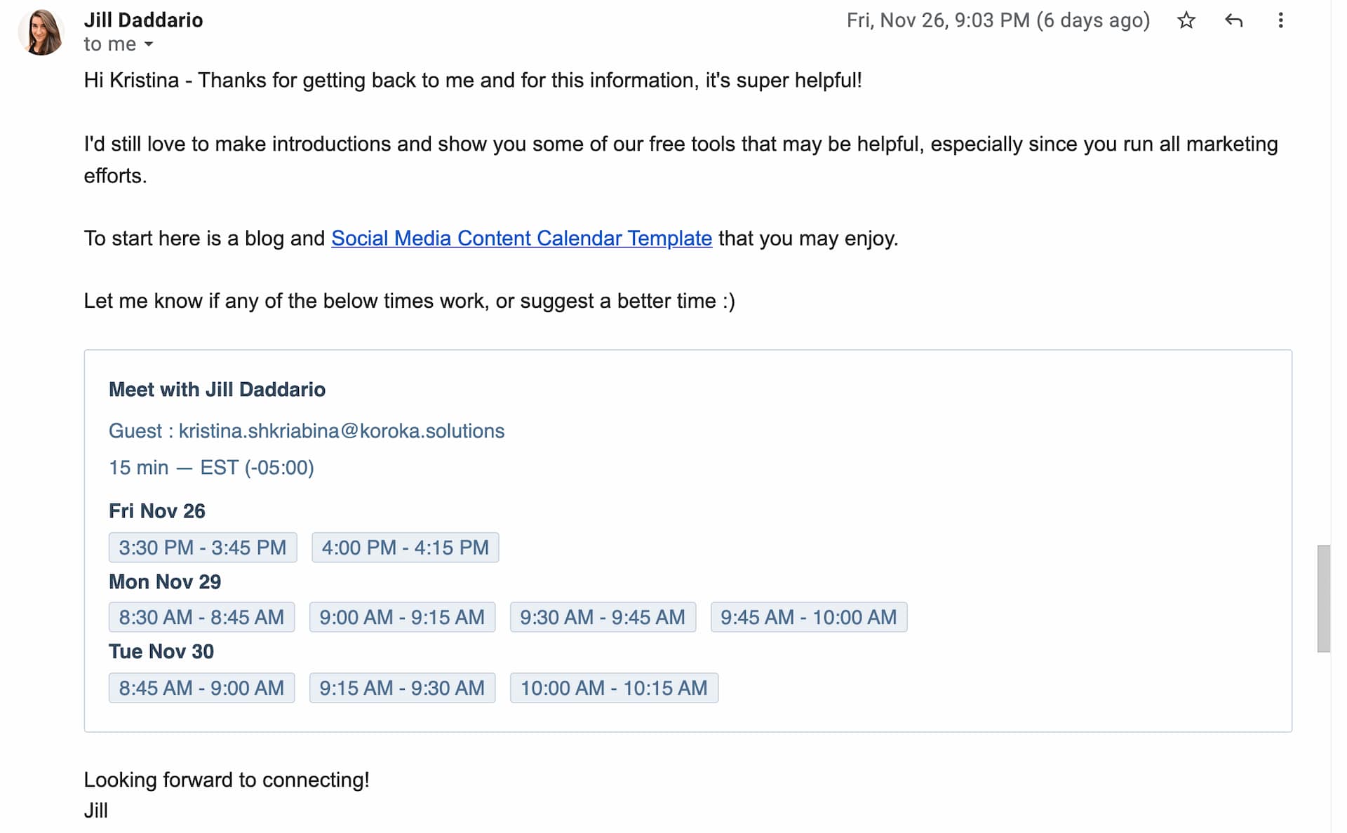 To show that the meeting won’t take long, write, for example, that you only need 15 minutes and attach possible booking appointments.