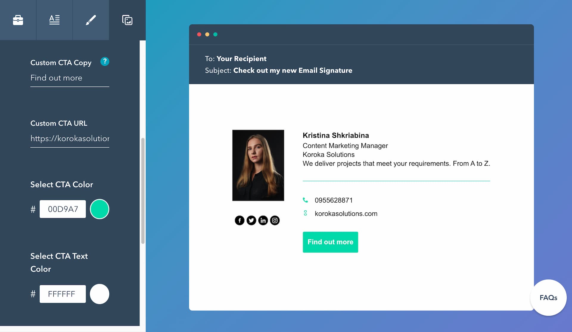 Pro Tip: We highly recommend you brand every message by creating a cohesive email signature for each agent on your team. It should include their photo, links to social media channels (personal + corporate), phone number, and website URL.Â