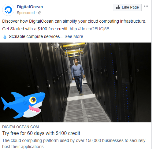 Above is the DigitalOcean ad that takes us to the landing page below.