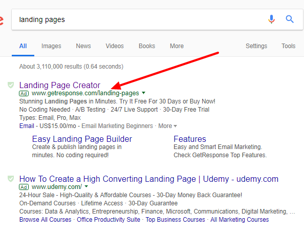You can’t help but know you’re on the right page. The message match is clear. You’re looking for a page about landing pages and you’ve found it.