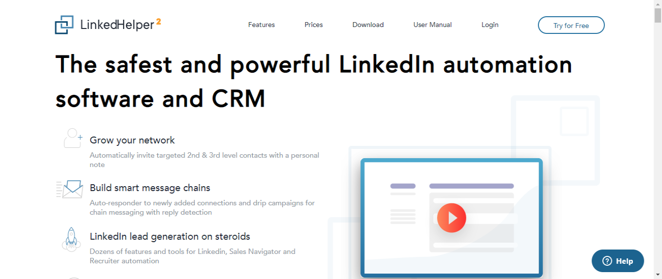 LinkedIn Helper combines LinkedIn automation with a solid CRM to help you get better results from your outreach. It boasts 90,000 happy users and has the features to back it up. Like many other tools on this list, it has a strong emphasis on safely automate your LinkedIn activities.