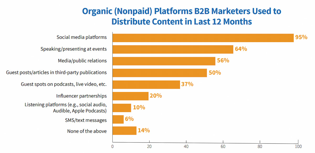 Not all distribution channels are made equal when it comes to B2B lead generation. To maximize the reach and impact of your content, identify the channels where your target audience is most active and engaged. This may include: