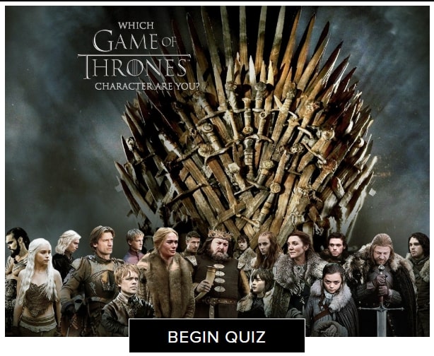For example, in the Game of Thrones quiz, I got Jon Snow.