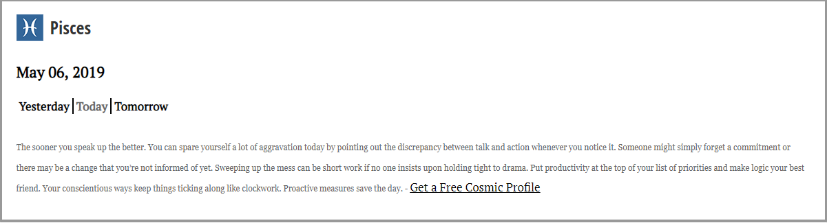 I found my daily horoscope which was vague but just relevant enough to make me feel like it applied to me.