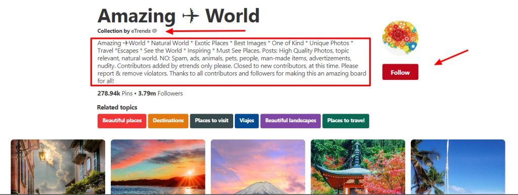 The profile page will give you a bit of useful information. Normally, the administrators will put the contributor and board guidelines here. You’ll also learn who the administrator is. It’s the first contributor image you see.