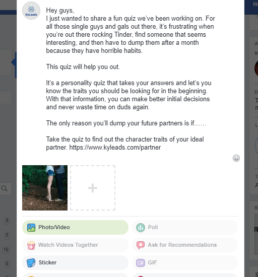 Facebook groups are a tricky way to promote your quiz. If you join up and drop links you’ll likely be banned. If you don’t take your quiz promotion seriously in groups then you’re missing out on a lot of opportunities.