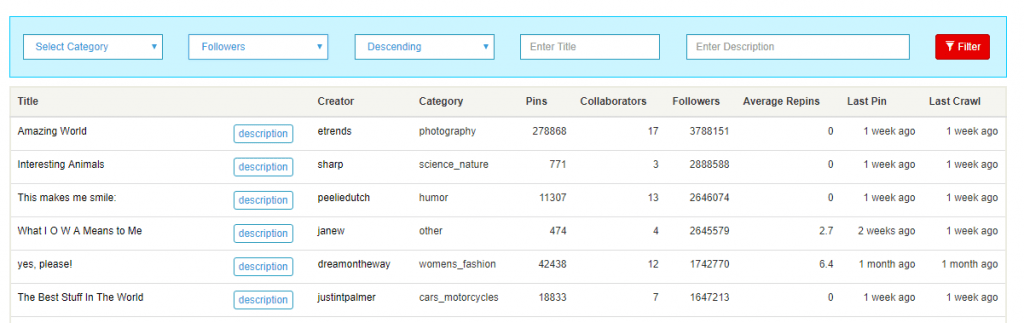 I’m glad you asked. There’s a useful website called Pingroupie.com. It’s a directory of Pinterest group boards that can be sorted by the number of followers, category, number of collaborators, etc.