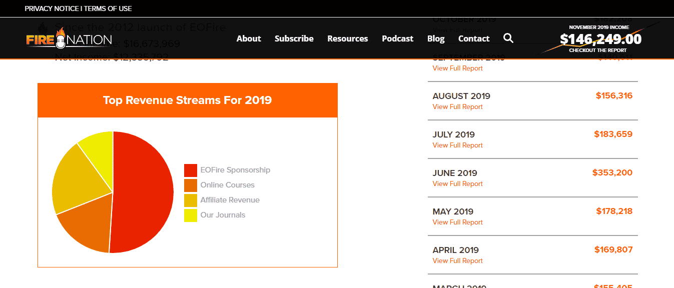 Jon Lee Dumas of EOFire is transparent about his income and breaks down how he generates revenue: