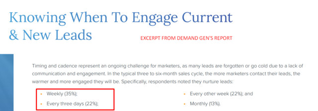 You’ve got to interact with them multiple times before they turn into a paying customer. In fact, over 57% of businesses interact with leads at least once a week, if not sooner.