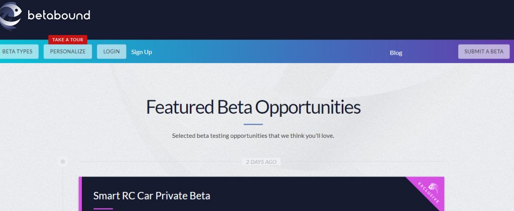 Betabound is a curation website that connects interested beta testers with the people who need them. There’s not much difference between them and BetaList except there’s no paid option on betabound.