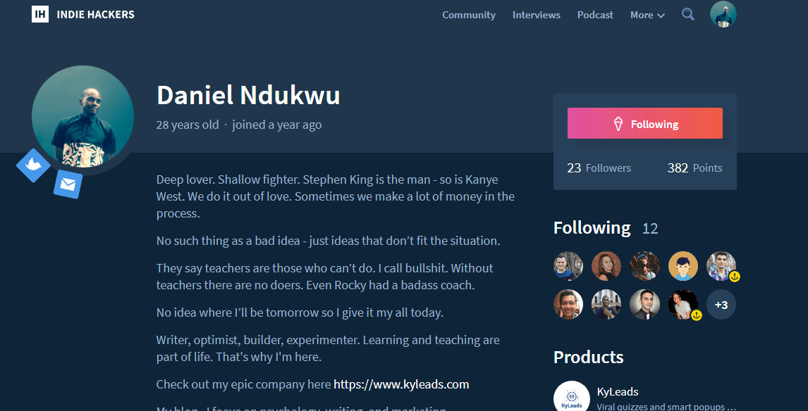 Indie Hackers is an interesting community full of makers. It’s unique because you’re encouraged to share links to projects you’re working on.