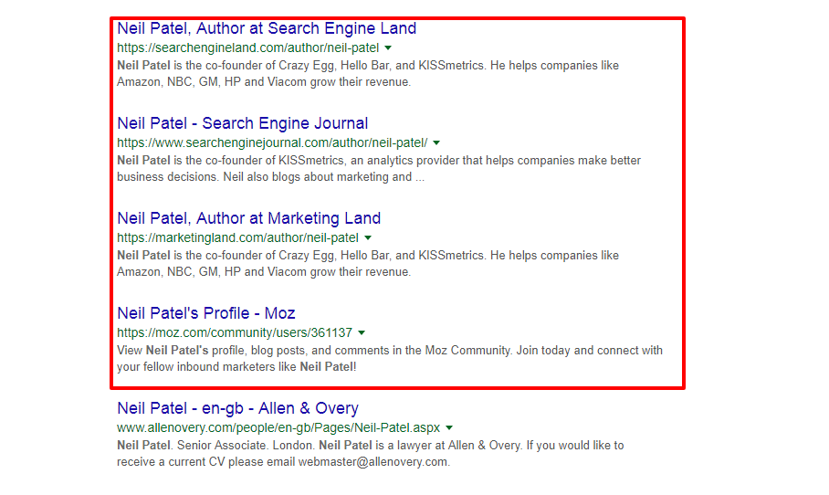 For example, we’d just type in Neil Patel or Pat Flynn and see what Google brought back.