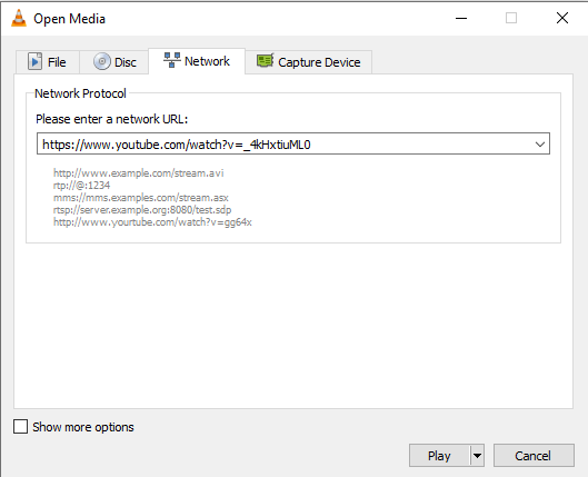 Copy the code and paste it in your browser then hit enter. This will open a video player within your internet browser.