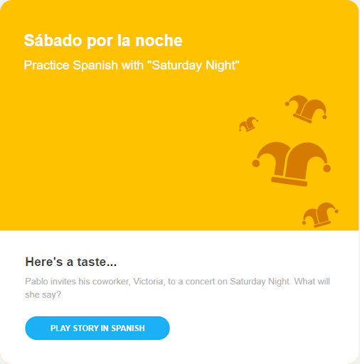 This upsell email is by Duolingo, featuring their interactive ‘Stories’ feature. It is sent to people who downloaded the Duolingo app. The email features a taste of the feature, which is a lesson centered around telling a story. This should provide an effective means of teaching a new language.