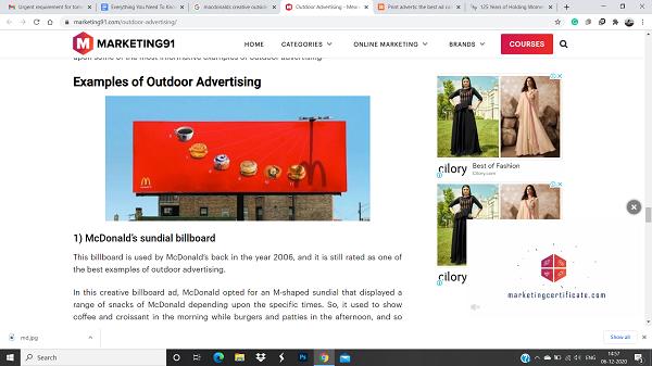 One of the primary examples of outdoor advertising is McDonald’s Billboard.