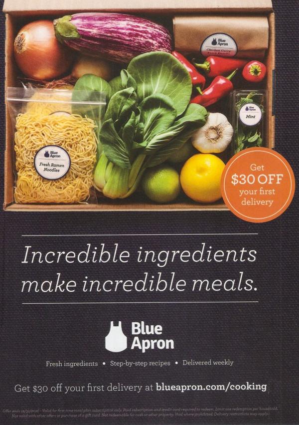 Here is an example of an ad from meal delivery service, Blue Apron. The ad highlights its USP and has a clear call to action.