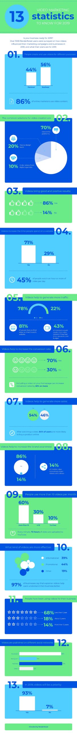 We’ve collected the survey results and analyzed them. Check out the infographic below to see the video marketing statistics and get prepared for 2019: