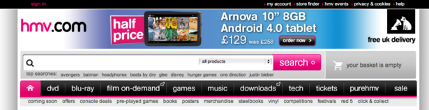 The use of colour to label Play.com’s site search makes it more likely to attract the visitor’s attention, and also doubles as a useful call to action.
