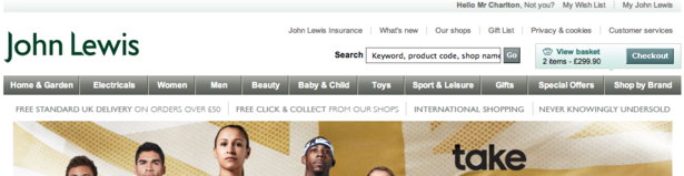 On these examples from John Lewis and Net A Porter, the search box blends in to the page, and is harder to spot as a result.
