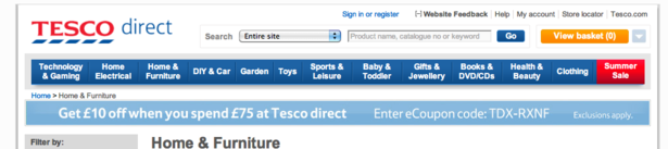 Tesco provides a drop-down menu so that customers can limit the scope of their search to one section of the site.