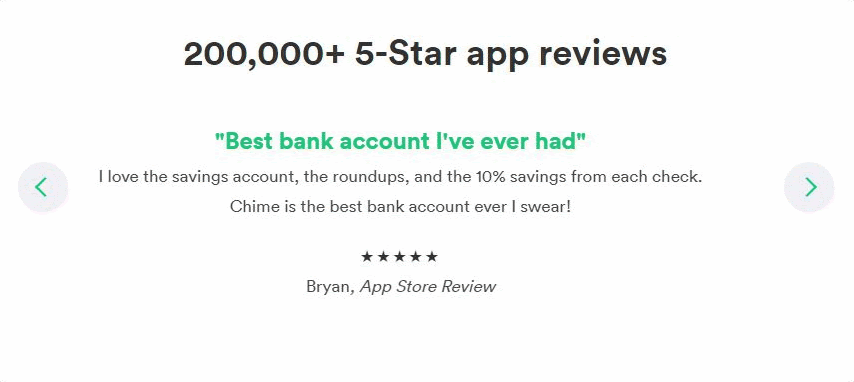 Although social proof comes in different formats, the end goal is usually the same —to increase conversions. For instance, Chime, a mobile banking app, leverages in-app reviews on the front page of its website.