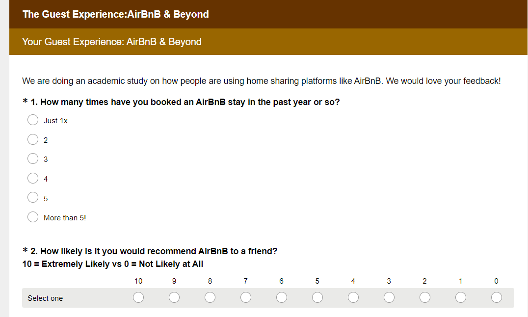 Here’s an anonymous customer feedback survey from AirBnB:
