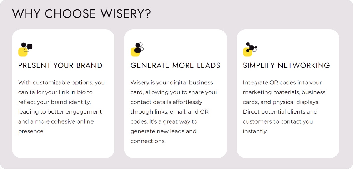 Link in bio tool: This tip is especially effective for directing traffic to centralized pages and websites. Tools like Wisery allow you to organize all your important links, offers, and content in one easily accessible spot, making it easy for users to navigate and convert.