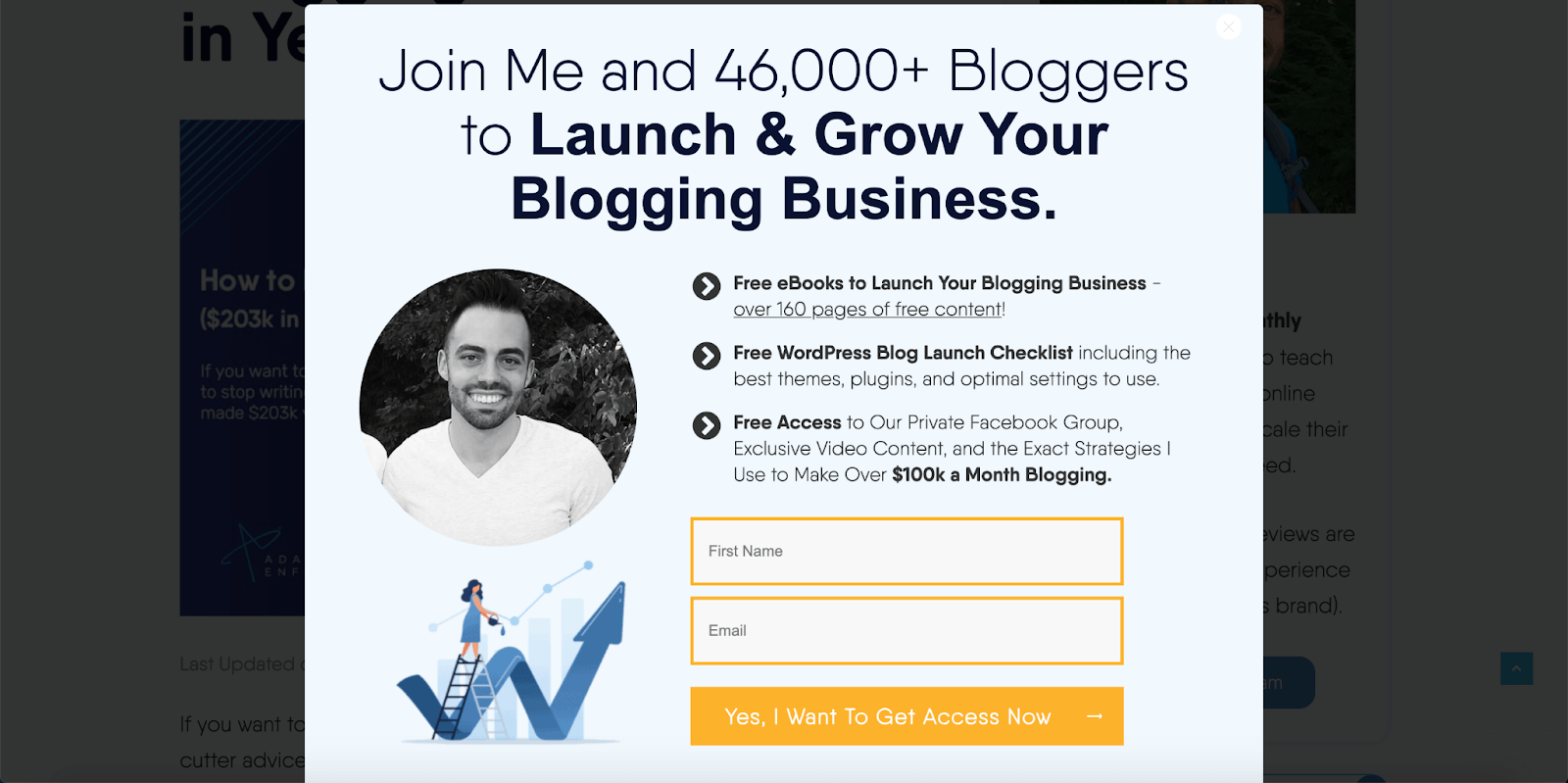 Here is the popup he uses to get people to join his email list.