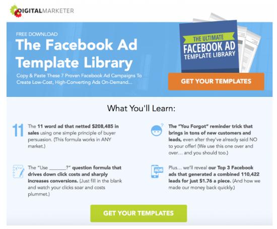 A favorite example of mine is Digital Marketer’s Facebook Ad Template Library.