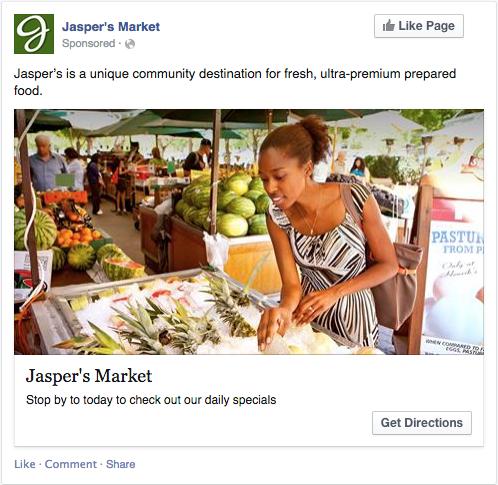 For example, running Facebook ads (the right way) can generate 100 daily or weekly leads (if that’s your goal at step #1). Facebook ads can also drive a lot of awareness to a store to increase sales. Here’s an example from Jasper’s Market: