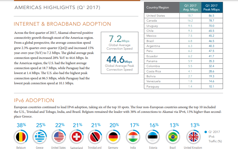 Akami creates a report every quarter about the state of internet penetration and average internet speeds.